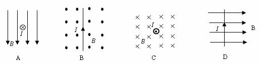 6.下图所示的四种情况,通电直导体均置于匀强磁场中,其中通电导线不受安培力的是
