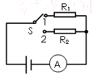 10. 如图,电源的内阻不可忽略。已知定值电阻R1=10Ω,R2=8Ω.当电键S接位置1时,电流表的示数为0.20A,那么当电键S接位置2时,电流表的示数可