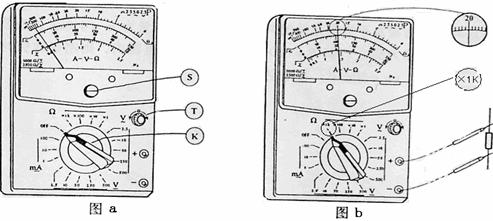 (1)图a为多用电表的示意图,其中S、K、T为三个可调节的部件,现用此电表测量一阻 值约为20~30