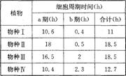 16. 研究人员还对几种植物分生组织的细胞周期进行研究,获得的数据如下表。请回答: