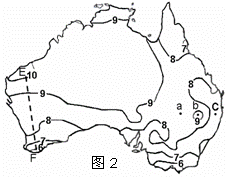图2为“澳大利亚大陆多年平均每日日照时数等值线分布图”,完成3-5 题。