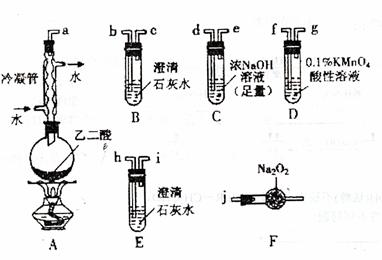①将接口a与j连接进行实验,观察到F中生成的气体可使带火星的木条复燃,则F中最主要反应的化学方程式为 。