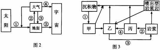 3.图2中各箭头表示太阳、地面、大气、宇宙空间的热力作用。青藏高原和四川盆地纬度位置相当,下列叙述正确的是