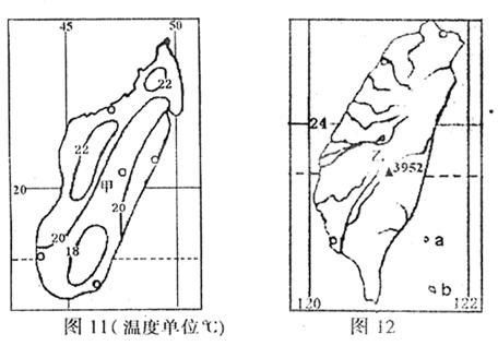 (2)图11中所示的甲岛20℃等温线弯曲明显,主要影响因素是 。