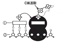 B. ①上携带的氨基酸可通过查密码子表上的UGC得知