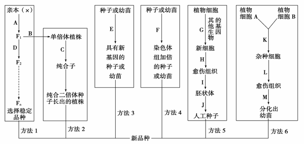 29.(16分)下面为6种不同的育种方法,据图回答下列问题: