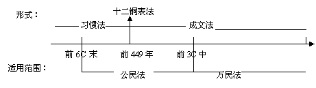 [解析]B 从时间可知,该法律是《十二铜表法》。它是罗马第一部成文法,属于公民法的范畴。