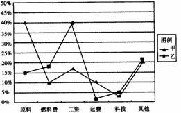 读“甲、乙两类企业的投入构成变化折线图”,完成15-17题。