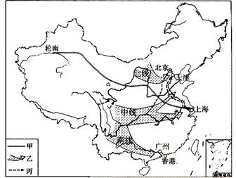 (3)丙农业地域类型为 ▲ ,其农产品出现在欧洲人餐桌上,主要得益于 ▲ 。