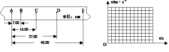 (2)在如图所示的坐标系中,以打A点时为计时起点,作出小车的v-t图线,并根据图线求出a= m/s2 ,纸带上A点的速度vA= m/s。