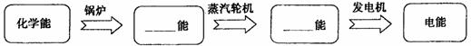 火力发电厂“吃”的是煤,“发”的是电,在整个发电过程中能量转化的情况如图所示,请你在方框中填入相应的能量形式: