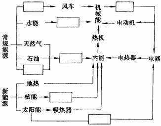 请在下图的框架图中,补充完整下列能量转化过程中的空缺项:
