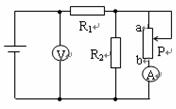 如图所示电源电动势为E,内阻为r给各电阻供电,当滑动变阻器的滑片P向上端a滑动过程中,两表的示数情况为