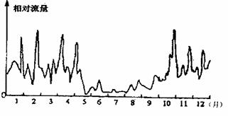 (3)如果该河位于北半球,河流下游某水文站测到相对流量过程曲线如下图。则该河河水补给区可能以 补给为主。(2分)