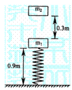 18.(12分)如图13所示,一轻质弹簧竖直固定在地面上,自然长度为1m,上面连接一个质量为m1=1kg的物体,平衡时物体离地面0.9m。距物体m1正上方高为0.3m处有一个质量为m2=1kg的物体自由下落后与弹簧上物体m1碰撞立即合为一体,一起在竖直面内做简谐振动。当弹簧压缩量最大时,弹簧长为0.6m。求(g取10m/s2):