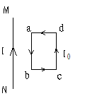 流I,矩形线框中通有沿递时针方向的电流I0,则