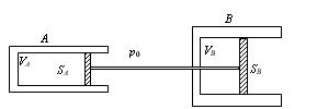 初始时A、B中气体的体积皆为V0,温度皆为T0=300K。A中气体压强PA=1.5P0,P0是气缸外的大气压强,现对A加热,使其中气体的压强升到PA=2.0P0,同时保持B中气体的温度不变求此时A中气体温度TA'。![]()