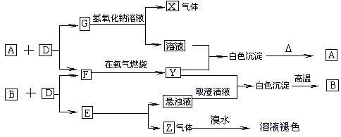 23、已知:A、B、E为固体化合物;D、G为固体单质;F、X、Z为可燃性气体,且F、X燃烧的火焰呈蓝色或淡蓝色。在一定条件下它们能实现如图所示的变化。