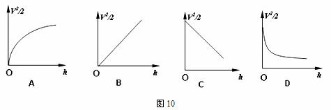 为横轴画出的图线应是图10中的___________就证明机械能是守恒的,图像的斜率代表的物理量是___________。