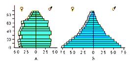 (1)图A、B为两个国家人口年龄组成图,纵轴表示年龄,横轴表示各年龄段人口占总人口的百分比。 国家未来的人口增长率高。