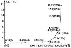 (2)下图表示我国人口增长的情况,在1600年-2000年间,我国人口基本以 型曲线增长,因此,在20世纪80年代以来,我国全面推进了 政策。