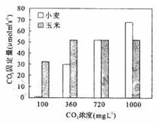 1.(北京) 小麦和玉米的CO2固定量随外界CO2浓度的变化而变化(如右图)