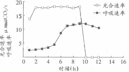 4、在充满N2与CO2的密闭容器中,用水培法栽培几株番茄,CO2充足测得系统的呼吸速率和广合速率变化曲线如下图,请回答问题