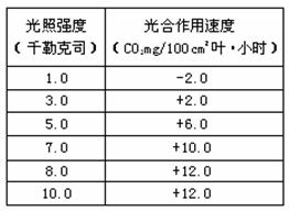 在一定浓度的CO2和适当的温度条件下,测定某双子叶植物叶片在不同光照条件下的光合作用速度,结果如下表表中负值表示二氧化碳释放量,正值表示二氧化碳吸收量