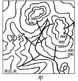 18.图甲为“我国某地区等高线地形图”,该地区年平均降水量为510mm,降水集中在7、8两月。读图回答下列问题。