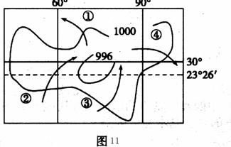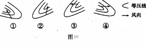 18.图10所示气压场中,易出现图9所示天气系统的是