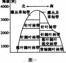 我国东部某山地垂直自然带谱如图13所示。读图完成23-24题。