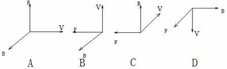 18.如图所示磁感应强度B、正电荷速度v和磁场对电荷的作用力F三者的相互关系图(其中B垂直于F与v决定的平面,B、F、v 两两垂直)。其中正确的是: