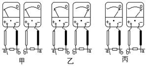 (3)用多用电表欧姆挡(×100)测试三只晶体二极管,其结果依次如图甲、乙、丙所示。由图可知,图中______的二极管是好的,该二极管的正极是____端。