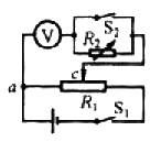 要测量内阻较大的电压表的内电阻,可采用“电压半值法”,其实验电路如图所示。其中电源两端的电压值大于电压表的量程,电阻箱R2的最大阻值大于电压表的内电阻。先将滑动变阻器R1的滑动头c调至最左端,将R2的阻值调至最大,依次闭合S2和S1,调节R1使电压表满偏,然后断开S2,保持滑动变阻器的滑动头c的位置不变,调节R2使电压表半偏,此时R2的示数即可视为电压表的内电阻值。