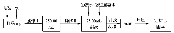 (5)若蒸发皿质量是W1 g,蒸发皿与加热后固体总质量是W2 g,则样品中铁元素的质量分数是 (列出原始算式,不需化简);若称量准确,最终测量的结果偏大,则造成误差的原因可能是 (写出一种原因即可)。
