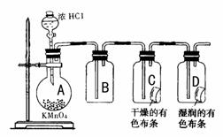 27、某学习小组通过上网查阅资料得知:实验室可以用KMnO4与浓盐酸在常温下反应制取氯气,其反应的化学方程式为2KMnO4+16HCI(浓)=2KCI+2MnCl2+5Cl2↑+8H2O ,据此,他们设计了以下实验方案探究Cl2的性质。![]()