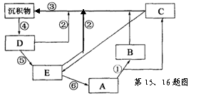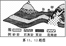 右图为“地壳物质循环示意图”,读图完成15-16题。