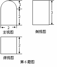 已知某个几何体的三视图如图(主视图中的弧线是半圆),根据图中标出的尺寸(单位:
