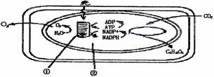D.光合作用的光反应是在图中①上进行的,而暗反应是图中②中进行的![]()