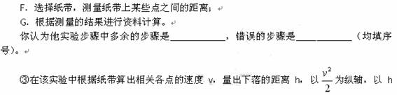 12、(8,9,10班同学不做)(15分)用落体法验证机械能守恒定律的实验中: