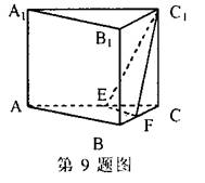 9.如图,直三棱柱ABC-A1B1C1中,AC=BC=CC1=1,
