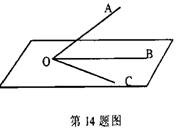 14.如图,在自空间一点O出发引三条射线OA,OB,OC中,平面OAB垂直于平面OBC,设直线OA和平面OBC所成的角为θ;![]()
