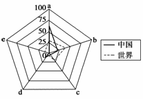 中国既是能源生产大国,又是消费大国,但每吨标准煤的产出效率仅相当于日本的10.3%,欧盟的16.8%,美国的28.6%。读“中国和世界能源消费结构图”(煤、石油、天然气和其他能源),回答1-2题。