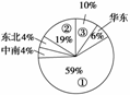 下图表示我国煤炭保有储量的地区(按东北、华北、华东、中南、西南、西北划分)分布。读图,回答9-11题。