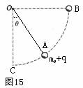 题型3.(竖直平面内的圆周运动问题)如图15所示,质量为 m、电量为+q的带电小球固定于一不可伸长的绝缘细线一端,绳的另一端固定于O点,绳长为
