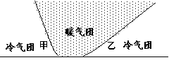 右图是“某年4月份的某日天气系统的垂直剖面图”,其中甲(110°E、40°N)、乙(120°E、45°N)是近地面的两地点,读图完成12-13题。