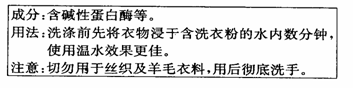 (3)该加酶洗衣粉用后要彻底洗手,其主要原因是 。