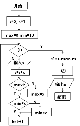青年歌手电视大赛共有10名选手参加,并请了7名评委。下面的茎叶图是7名评委给参加最后决赛的两位选手甲、乙评定的成绩,程序框图用来编写程序统计每位选手的成绩(各评委所给有效分数的平均值),试根据下面所给条件回答下列问题: