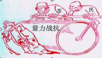右图是一幅关于抗日战争的漫画。对此漫画