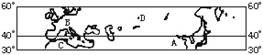 (3)A、B、C、D四地中,气温年较差最大的是___________,该地区的主要环境问题是____________________。